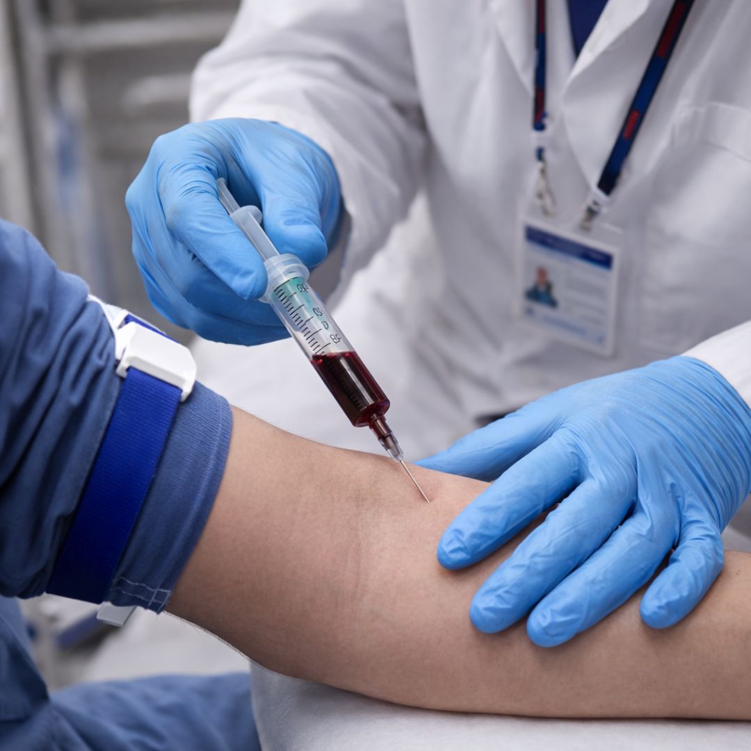 Plain sterile pack syringes and needles for the collection of blood.