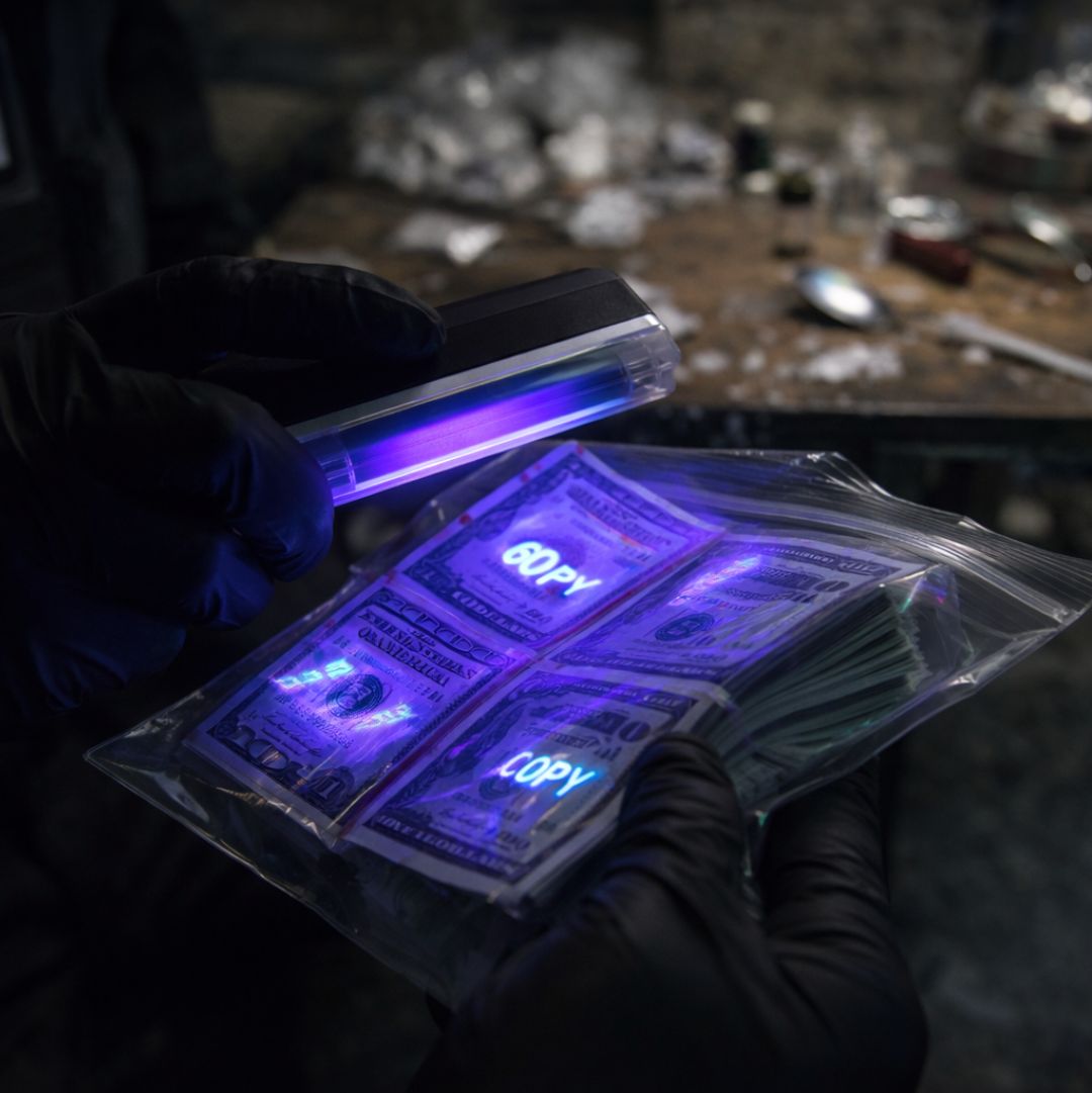 Powered by four AA size batteries, the UV-500 is useful in examining security markings and safeguards where mains power is unavailable.