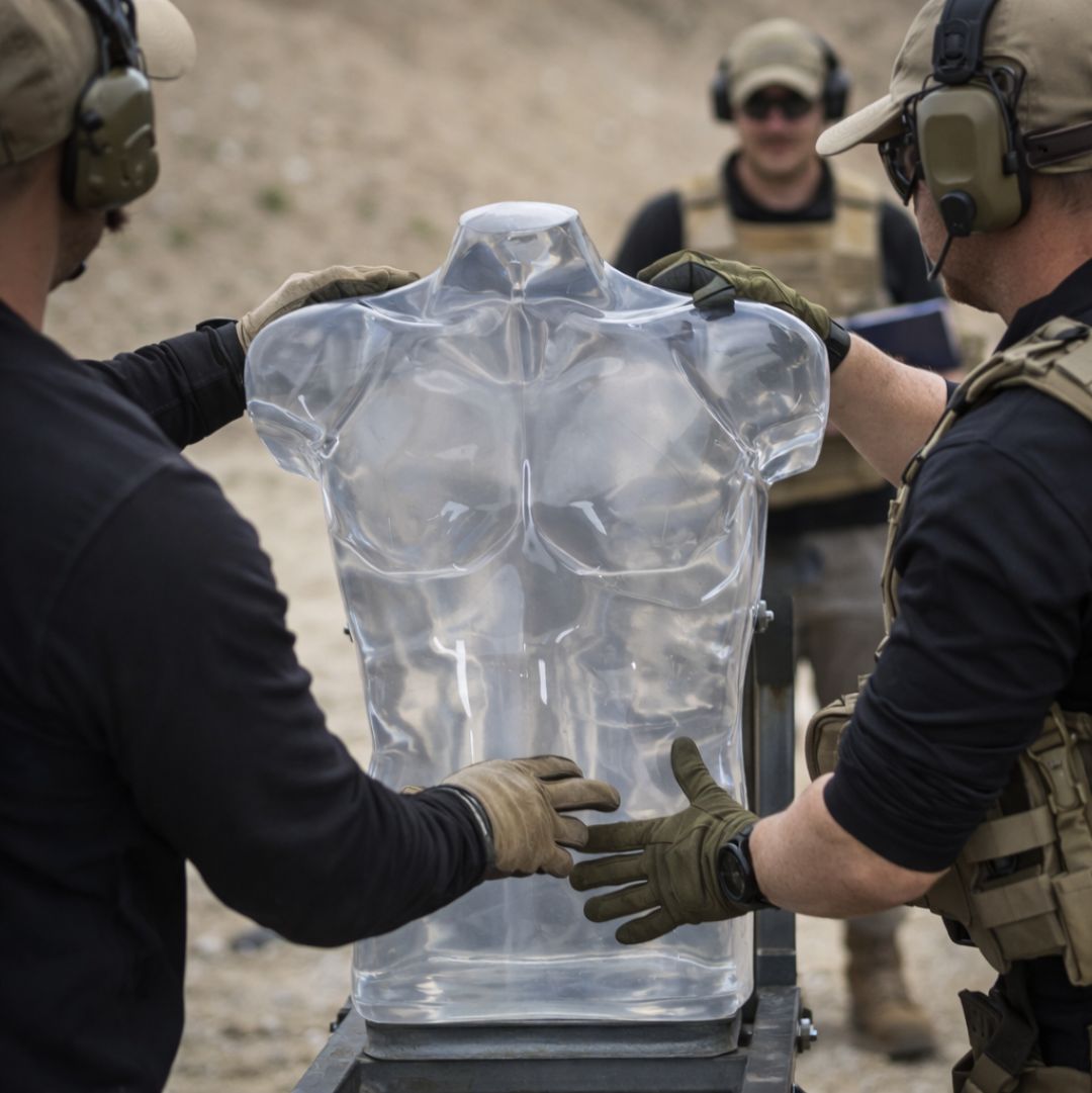 Our 20% Ballistic Joe Fit is the next generation of ballistic testing dummies. Joe Fit is the first-ever commercially available ballistic testing dummy that is reusable. Joe Fit is made of our industry leading synthetic ballistic gelatin and meets the NATO protocol for calibrating ballistic gelatin to match human tissue. The design of Joe Fit matches an athletic male in great physical condition.