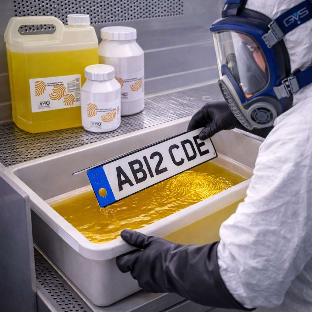 Basic Yellow 40 Fluorescent Dye is designed to enhance latent fingerprints developed with cyanoacrylate on non-fluorescent, multi-colored surfaces. Prints fluoresce bright yellow/green between 365nm and 485nm with a forensic light source or a UV light.