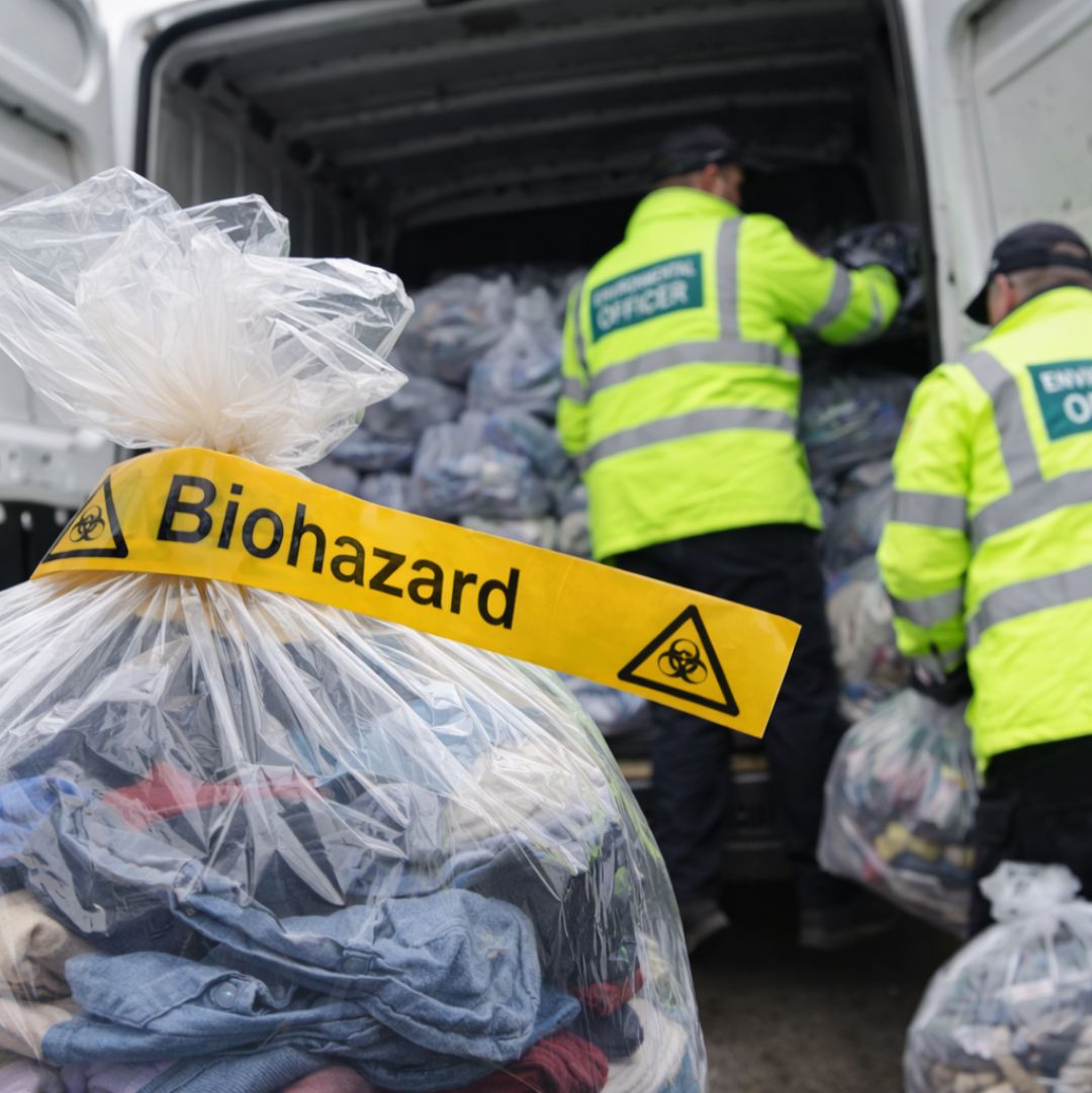 Biohazard self adhesive tape, for identification packaging and sealing boxes and bags