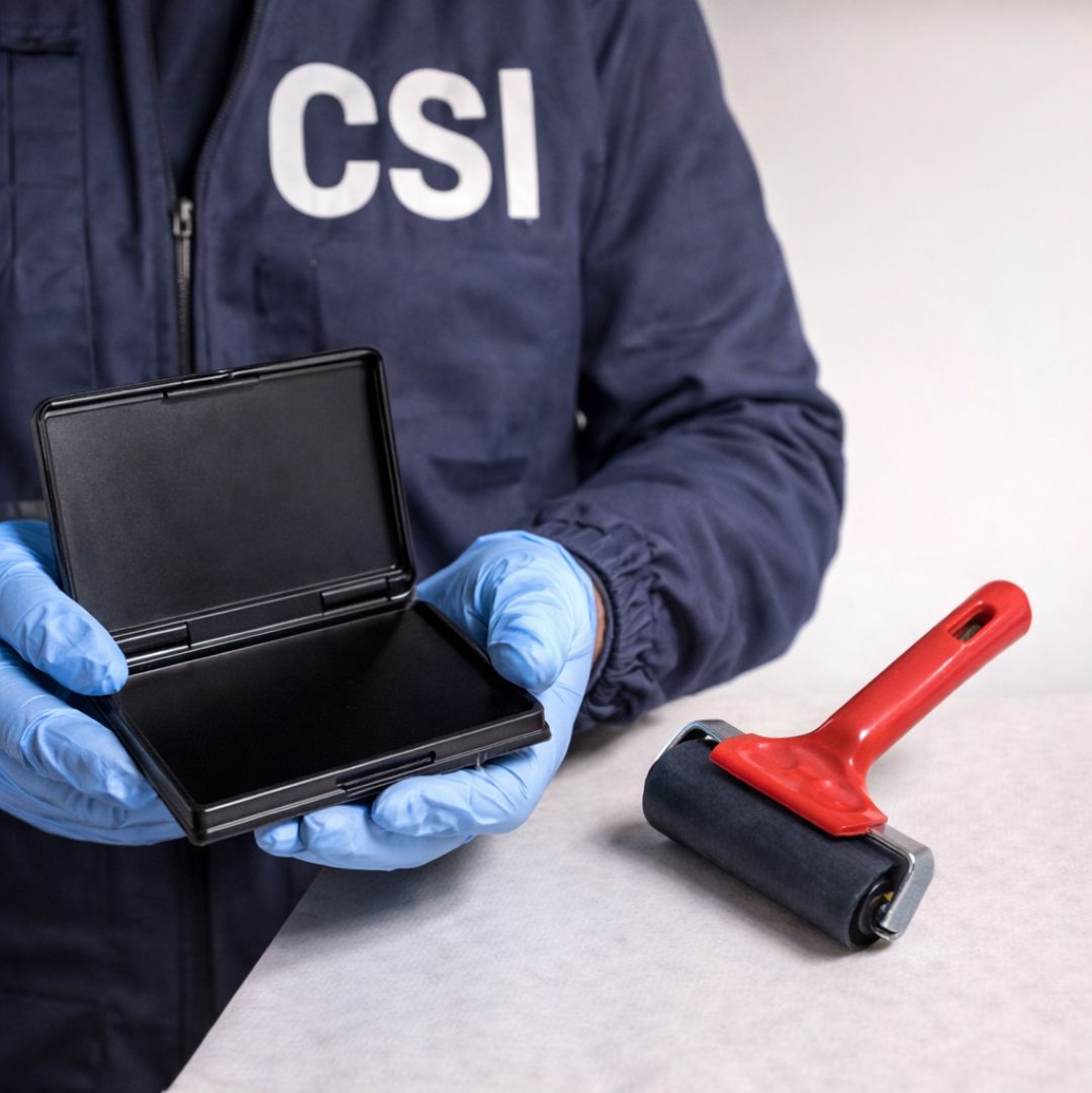 Fingerprint elimination inkpads with permanent ink, are supplied in a plastic snap-shut case to reduce evaporation.