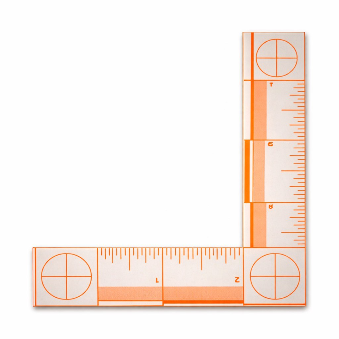 Use this L-shaped scale to record the image in such a manner as to prevent distortion resulting from non-parallelism between the planes of the film and object.