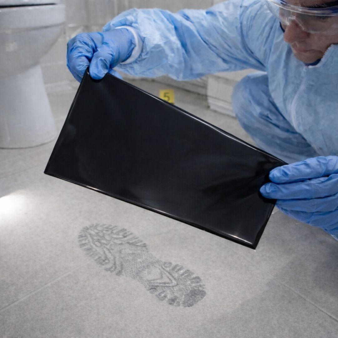 For recovery of shoeprints and trace evidence from grained surfaces such as computers, antique furniture and tables. The rubber gel lifter material has low adhesive release properties which confirms into the surface area to lift evidence.