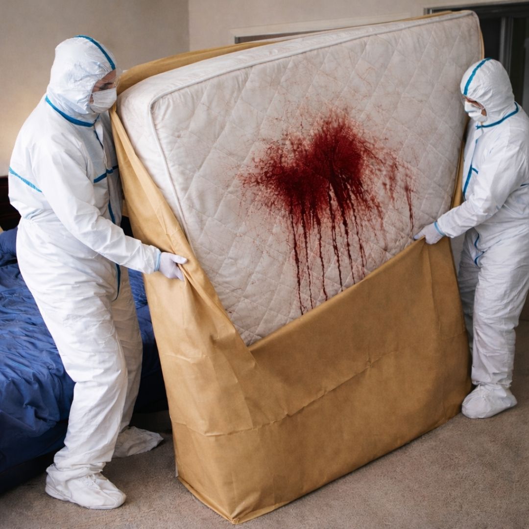 The perpetrator was covered in blood and when fleeing the crime scene had to push open every door, leaving fingerprints, fibre and blood evidence on every door.
