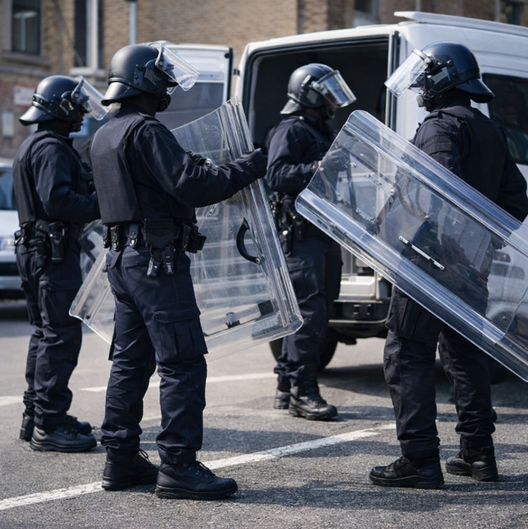 The interlocking structure gives the shield one of its biggest advantages. Instead of working as separate units, several shields can join together to form a ridged wall of defence. This design improves group protection and helps officers move as one coordinated line. It also gives the shield a clear tactical benefit in demanding environments.