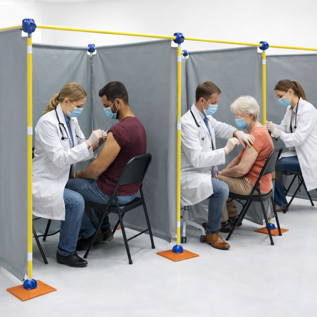 The standard screening system takes only 3-5 minutes to set up, giving you great flexibility in any situation and can be used internally and externally. The screening system covers a space of 7.2m(w) and 2.0m(h) when fully opened allowing enough height and space for privacy.