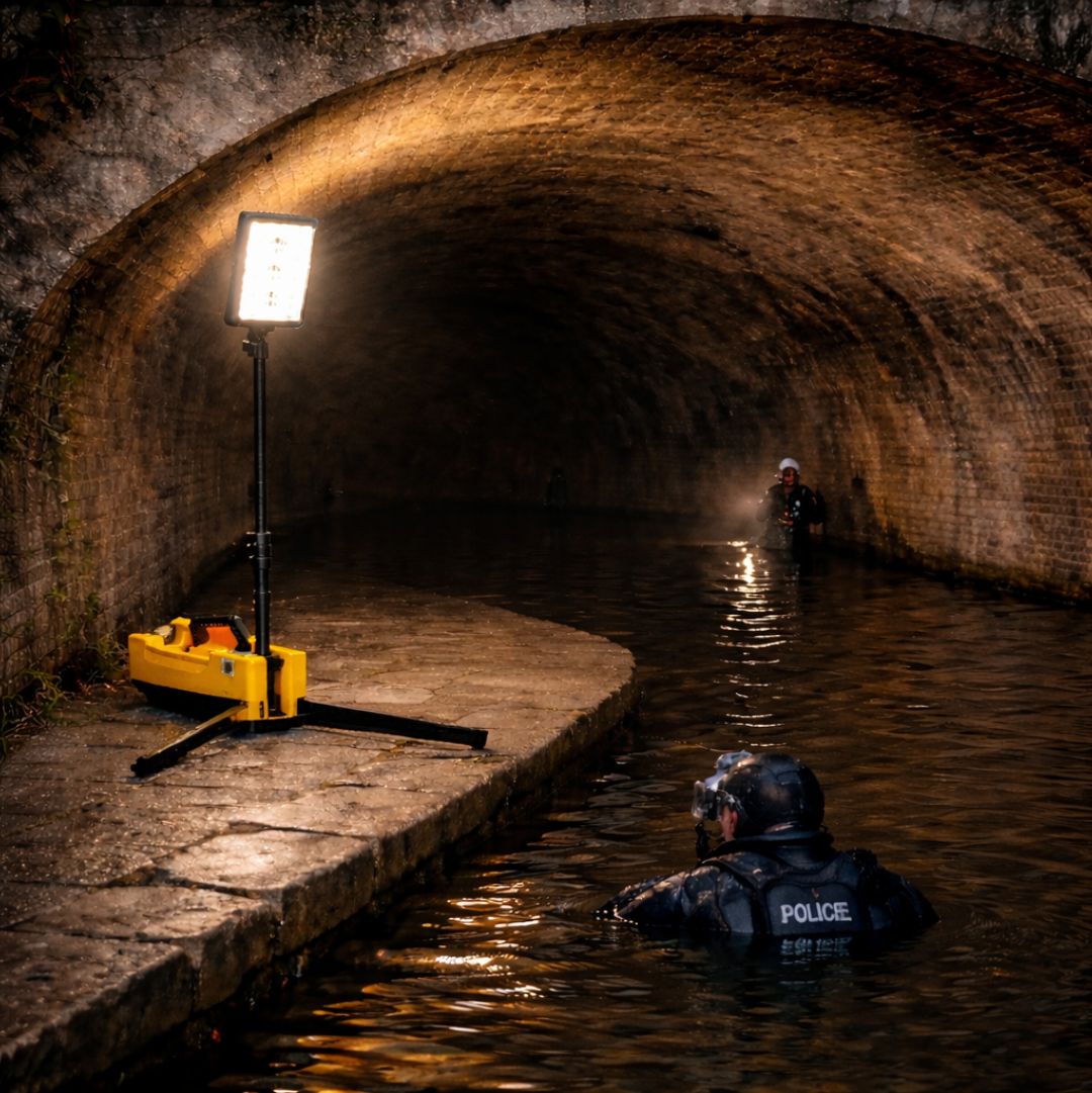 All in one (light, battery pack and 1.85m extension pole) in a lightweight (7-8.5kg) and compact design.