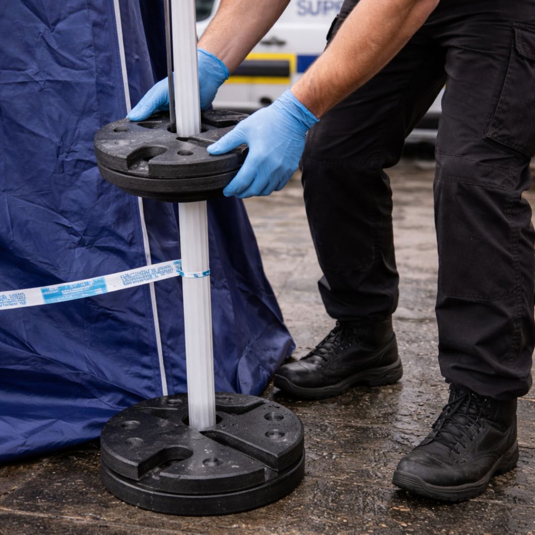 Pack of 2 (pair) of metal marquee weights (12kgs each). Dimensions 265mm x 40mm. This product is ideal for instant pop up marquees as it provides a good anchoring system on hard standing areas and added security in inclement weather when using the pop up on soft ground. 4 usually recommended on all feet of marquee/gazebo.