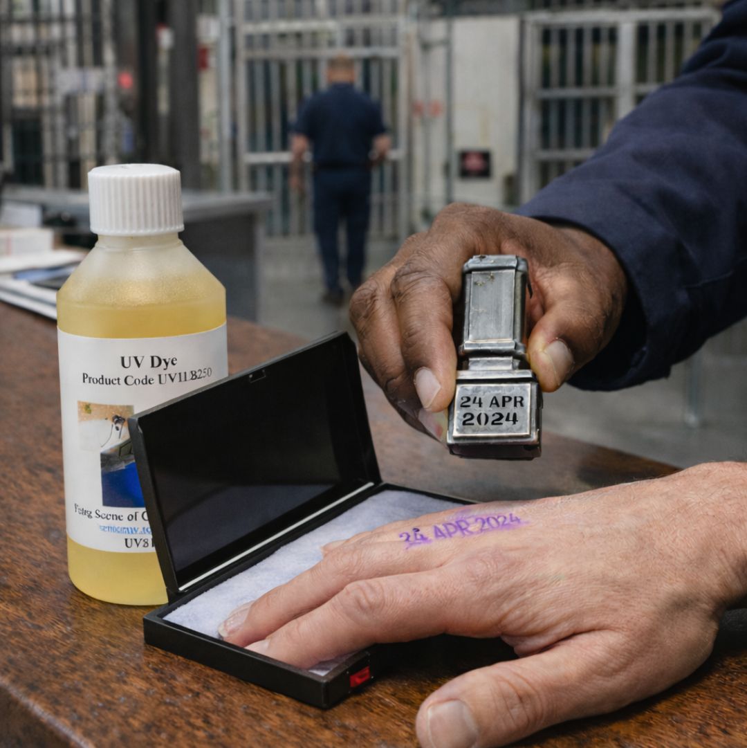First, staff apply a stamp to the hand or wrist. Next, the guest enters the venue as usual. Later, if the guest returns or approaches a restricted area, staff check the mark with a UV torch or blacklight. If the correct mark appears, staff allow entry. Consequently, the process stays fast, discreet, and practical, especially in nightlife environments.